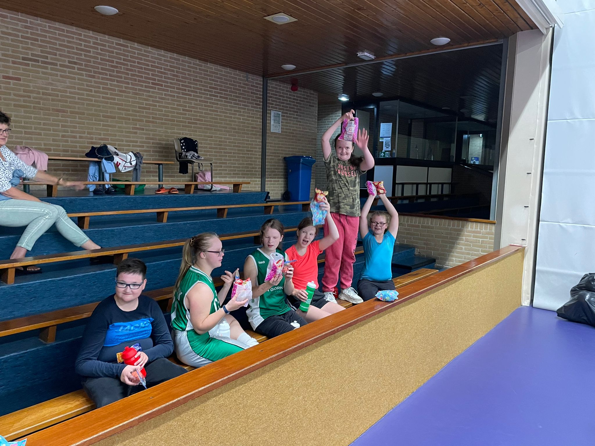 Zaterdagmorgen van 9.00-10.00 uur was het weer volop actie bij de g (ouden) basketballers van Peatminers, na het gebruikelijk bijklets moment starten we met de warming up middels tikkertje. Uiteraard alles met de basketbal, want dribbelen , rennen en tikken daar kun je best druk mee worden en ook heel warm. Vervolgens allerlei oefeningen op de mat. Zo zijn de Peatminers beresterk voor het vervolg. De lay-ups werden op maar liefst 4 baskets uitgevoerd, iedereen in beweging. Ja we waren er klaar voor het partijtje, yes een echt partijtje jongens tegen de meisjes, het ging gelijk op tot 6-6 daarna scoorden de meiden toch nog een keer. Het gevolg het dak eraf van de stamper (kunnen we ook eindelijk een nieuwe sporthal bouwen). We hebben nog even het partijtje nabesproken met elkaar onder genot van de traktatie van Maud, want ze was 11 jaar geworden. Het was nog lang onrustig aan de schout doddestraat, wat een plezier, wat een feest. Volgende week gaan we op bezoek aan de Krijgerstraat benieuwd of dat dak wel te houden is..